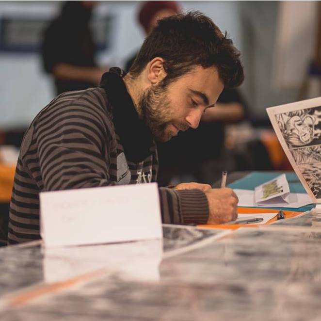 Per tutta la mattinata proseguirà “Su le penne”, il firmatavole con disegno dal vivo degli autori ospiti.
