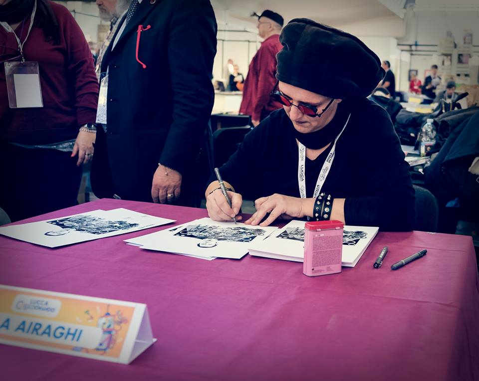 Alle 11.30 è in programma “Su le penne”, il firmatavole con disegno dal vivo, che proseguirà per tutto il giorno, degli autori Giovanni Talami (disegnatore), Gianluigi Gregorini (disegnatore), Luigi Bigio Cecchi (disegnatore), Lola Airaghi (disegnatrice), Andrea Modugno (disegnatore), Paolo Francescutto (colorista e disegnatore), Elisa2B (disegnatrice), Renata Castellani (disegnatrice), Luca Enrico (disegnatore e tatuatore) e i ragazzi di Yepp Loano.